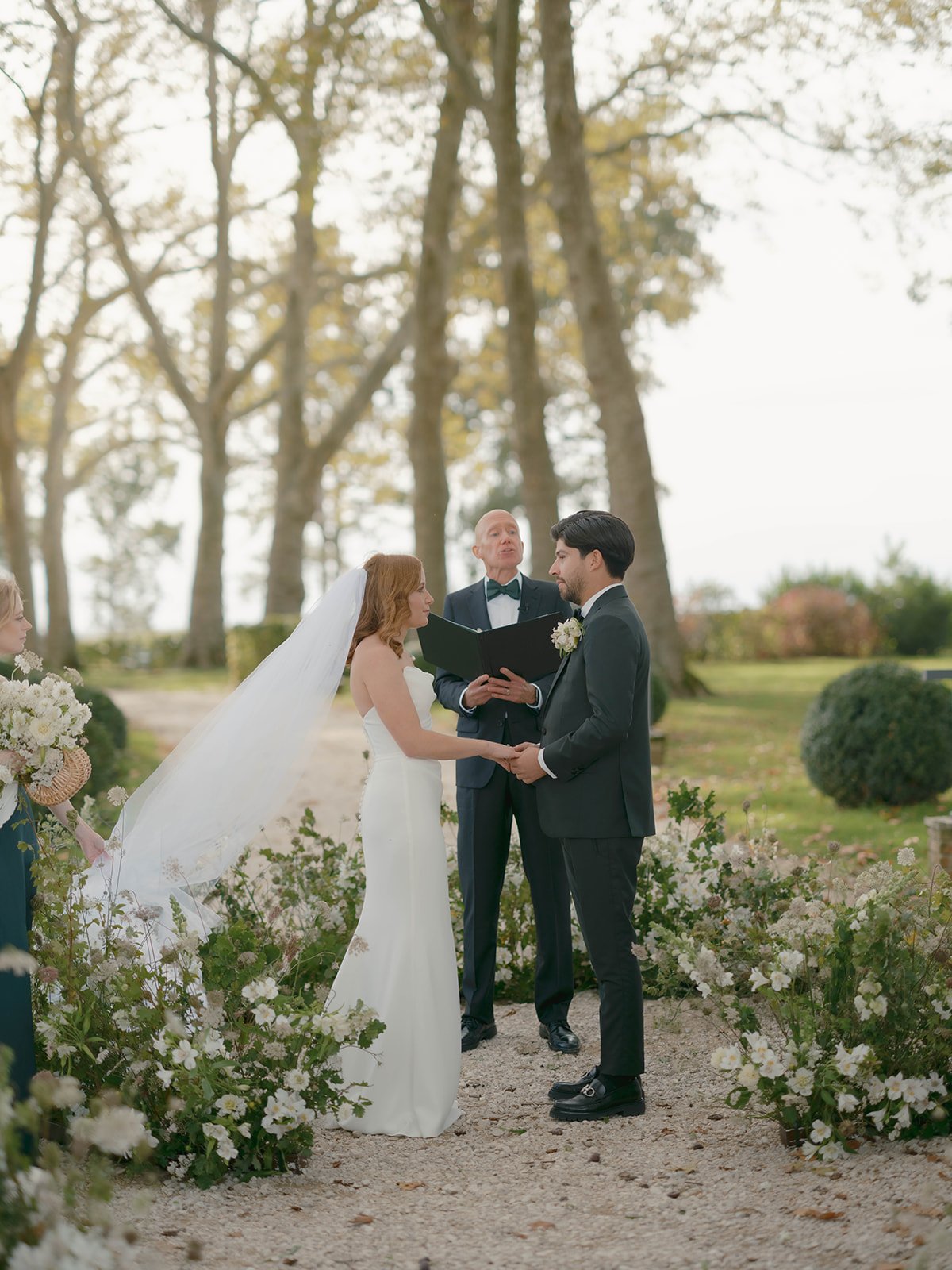 Practical note: If you are planning an outdoor ceremony at Champlatreux, have a conversation with your florist specifically about wind. The open orientation is beautiful but it changes the structural requirements of every installation.